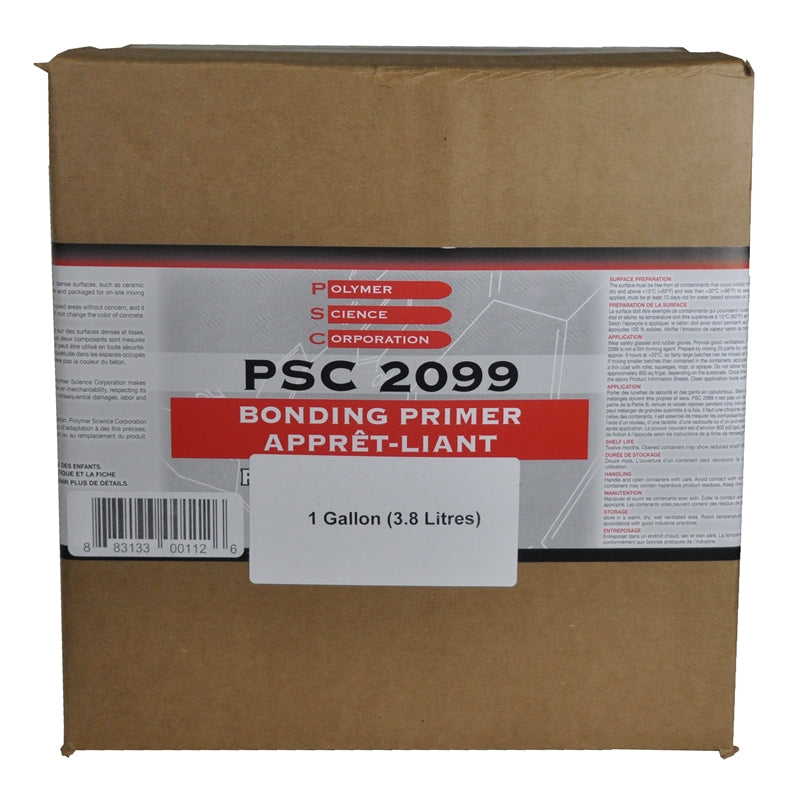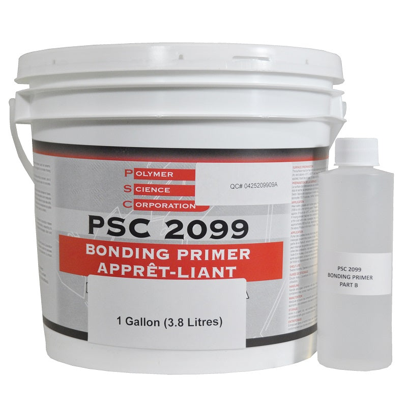 PSC 2099 Bonding Primer is a clear, two component bonding agent for epoxy topcoats for application to smooth, dense surfaces, such as ceramic tile, stone (should contain silicate), smooth new concrete, densifyed concrete, etc. Both components are precisely measured and packaged for on-site mixing and use.