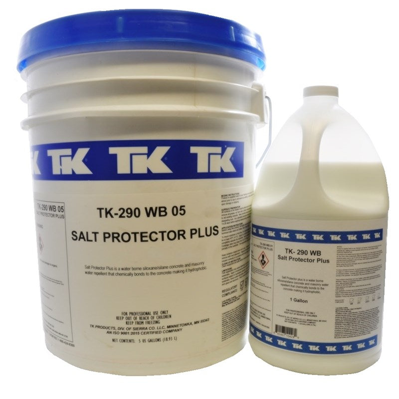 TK-290 WB is a waterborne silane/siloxane, multi-substrate, salt, and water repellent, engineered to prevent damage from environmental conditions including de-icing agents, salts, freeze damage, efflorescence, scaling, surface popping, and the damaging effects of acid rain. TK-290 WB is formulated to penetrate up to 1/8 inch (3.175 mm) and chemically bond with the substrate to become a permanent part, prohibiting salt, water, and chloride ion intrusion. This protection ensures the longest life-cycle to the substrate by preventing surface deterioration. This product has no sheen as it is non-film forming meaning it does not topical.