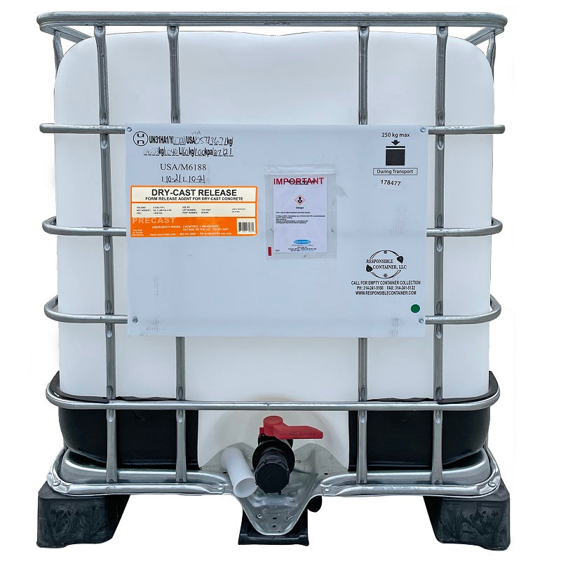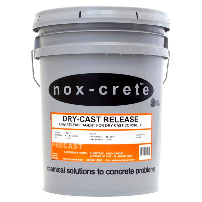 DRY-CAST RELEASE is a petroleum-based, combination chemically active and physical barrier type form release agent. DRY-CAST RELEASE positively prevents form binding and the accumulation of concrete buildup on form surfaces. It chemically reacts with the alkalies in concrete to form a slippery soap fi lm, which prevents buildup on form surfaces. It allows entrapped air to easily migrate along form surface during vibration, producing crisp, uniformly colored and voidfree concrete.