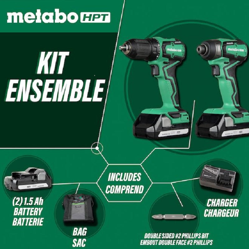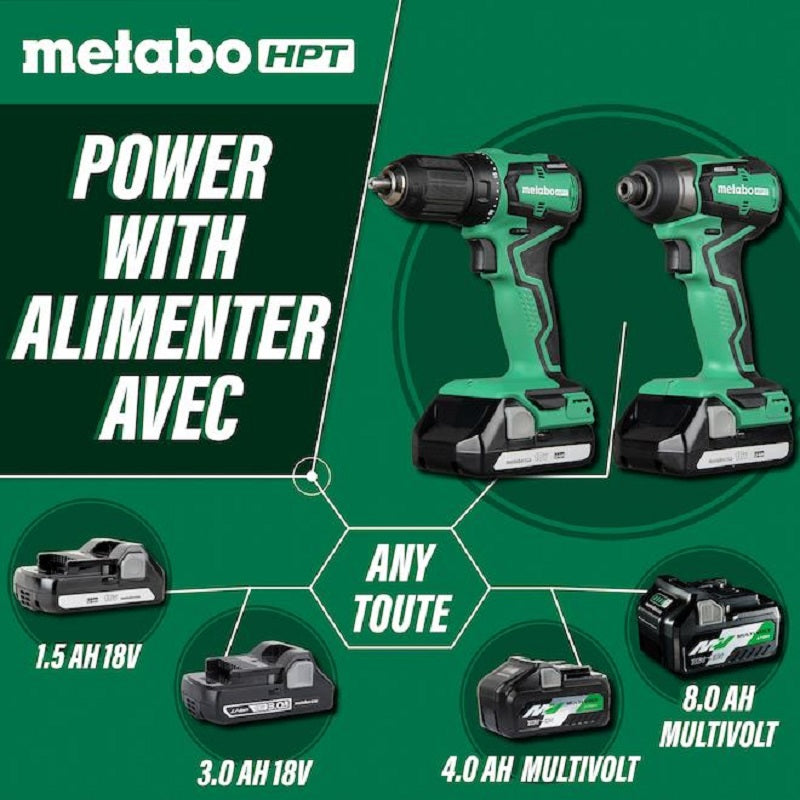 he Metabo HPT compact driver drill/impact driver combo kit (model KC18DDX) offers tremendous power in compact, lightweight designs that are made to fit easily in tight spaces. The compact driver drill produces up to 485 in-lbs of torque and weighs 1.9 lb (2.7 lb with included 1.5 Ah battery). The compact impact driver delivers up to 1,240 in-lbs of torque, up to 3,200 RPM and 4,000 BPM, and is remarkably lightweight at only 1.8 lb (2.6 lb with included 1.5 Ah battery). Equipped with brushless motor technology, superior ergonomics, and an extremely compact design, the new Metabo HPT compact DDX series combo kit is built to perform! The compact driver drill (model DS18DDX) and compact impact driver (model WH18DDX) are compatible with all Metabo HPT 18V and 36V lithium ion slide batteries, and are ideal for Pro Re modelers, and complement any DIY project or home repair!