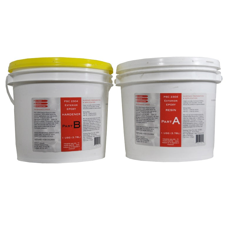 PSC 2304 Exterior Epoxy is a two component, self-leveling, 100 % solids tintable epoxy coating. Both components are precisely measured and packaged for easy and accurate on-site mixing and use. PSC 2304 Exterior Epoxy is a high build epoxy coating system designed for applications up to 20 mils. Being UV Resistant means that compared to all of the epoxies and most coatings, the effects due to UV radiation are less pronounced. PSC 2304 is approved by CFIA for incidental contact in federally or provincially inspected meat and poultry plants.